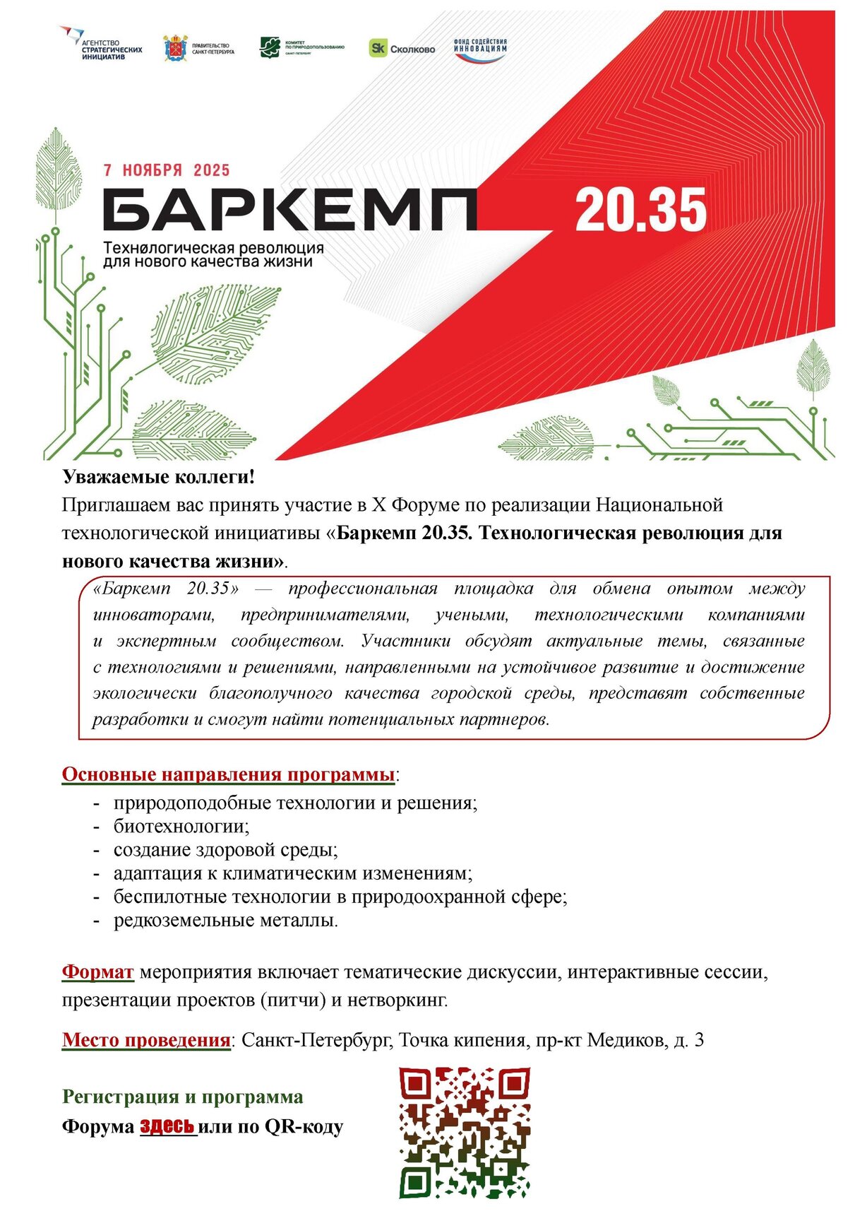 Баркемп 20.35 — профессиональная площадка для обмена опытом между инноваторами, предпринимателями, учеными, технологическими компаниями и экспертным сообществом. Участники обсудят актуальные темы, связанные с технологиями и решениями, направленными на устойчивое развитие и достижение экологически благополучного качества городской среды, представят собственные разработки и смогут найти потенциальных партнеров.